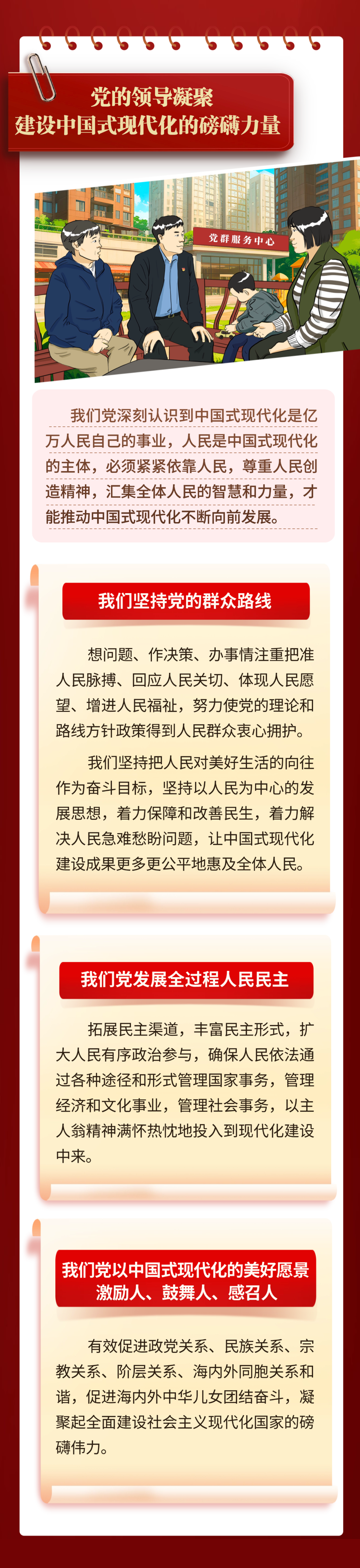党的二十大报告明确指出:“中国式现代化,是中国共产党领导的社会主义现代化”。这是对中国式现代化定性的话,是管总、管根本的。为什么要强调党在中国式现代化建设中的领导地位?这是因为,党的领导直接关系中国式现代化的根本方向、前途命运、最终成败。