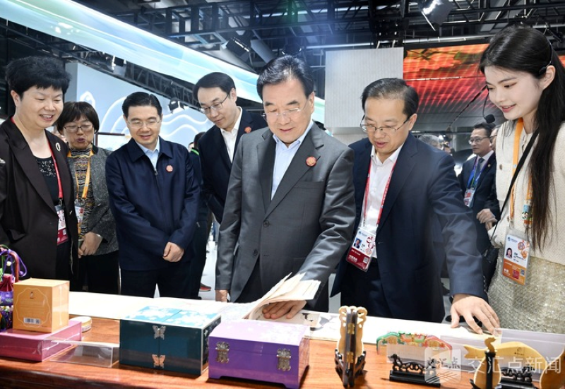 江苏人文交流展区设立了苏艺匠心、智享生活、聚势“苏超”等板块,老字号特色商品、非遗技艺、智能消费品、“苏超”文创产品等吸引了众多参观者。信长星与大家交谈,他强调,进博会是人文交流、开放合作的国家级平台,要精心做好展陈工作,丰富体验活动,让广大参观者更直观、更生动地感受江苏的人文魅力。信长星还来到临近的青海省海东市展馆,了解苏青支援协作和拉面“四进”工作等情况,与拉面师傅深入交流,祝愿大家把拉面产业做大做强,更好带动群众增收。