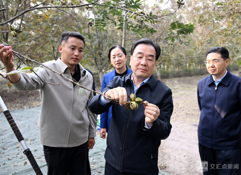泗洪金海岸生态农业基地碧根果挂满枝头,果农们正忙着采摘。信长星走进种植园,仔细了解全县碧根果种植面积、主要品种、产量价格、加工销售等情况。他指出,要大力发展科技农业、绿色农业、质量农业、品牌农业,推动农文旅融合,不断延伸产业链、增加附加值,带动群众增收致富。各地要立足资源禀赋,因地制宜发展特色产业,培养更多“新农人”,推动农业农村现代化取得新成效。