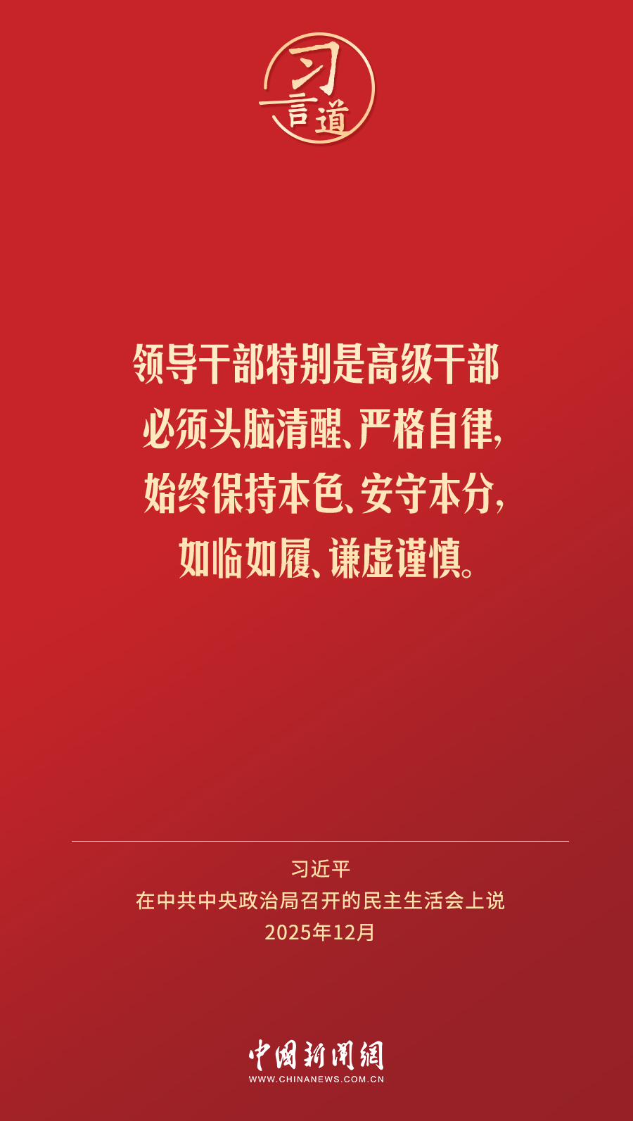 领导干部特别是高级干部必须头脑清醒、严格自律