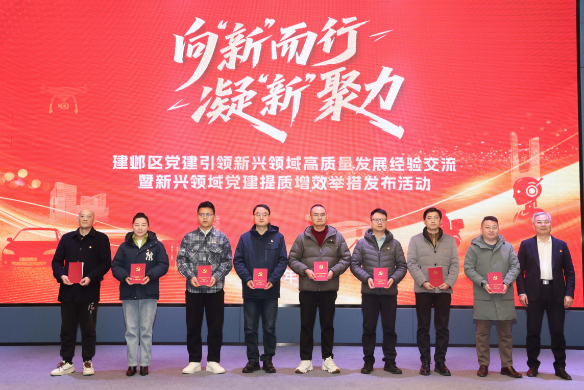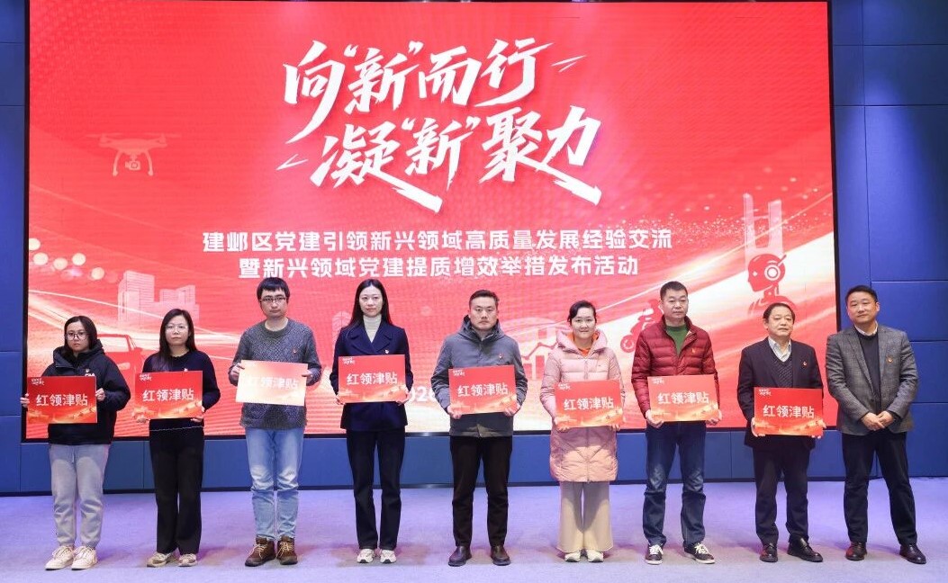 活动现场发布了《建邺区推动新兴领域党建提质增效“十条举措”》,为今后工作提供指引,明确重点任务。“十条举措”构建起涵盖政治引领、组织建设、助力发展、保障机制等方面的完整体系,突出三个导向,即更加注重党建引领与社会治理有效融合,切实把党的领导嵌入治理结构、融入生产经营;更加注重组织覆盖与作用发挥同步深化,切实强化党建工作在布局新赛道、集聚新资源、塑造新优势等方面的重要作用;更加注重服务管理与凝聚合力协同推进,切实形成关心关爱、统筹联动的制度安排。活动当天,还为2025年度初、中级“两新”组织党务工作者代表颁发证书和“红领津贴”。